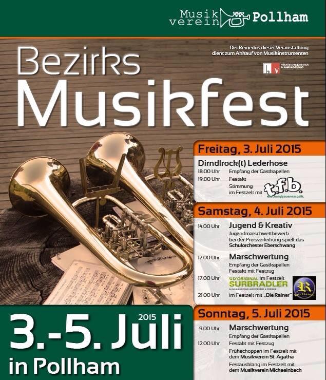 Von Donnerstag dem 02.07 bis Sonntag 05.07.2015 fand bei uns in Pollham das große Bezirksmusikfest statt. An jedem Festtag wurde von unserer Feuerwehr der Verkehr gereglt, sowie die Parkplätze eingewiesen.